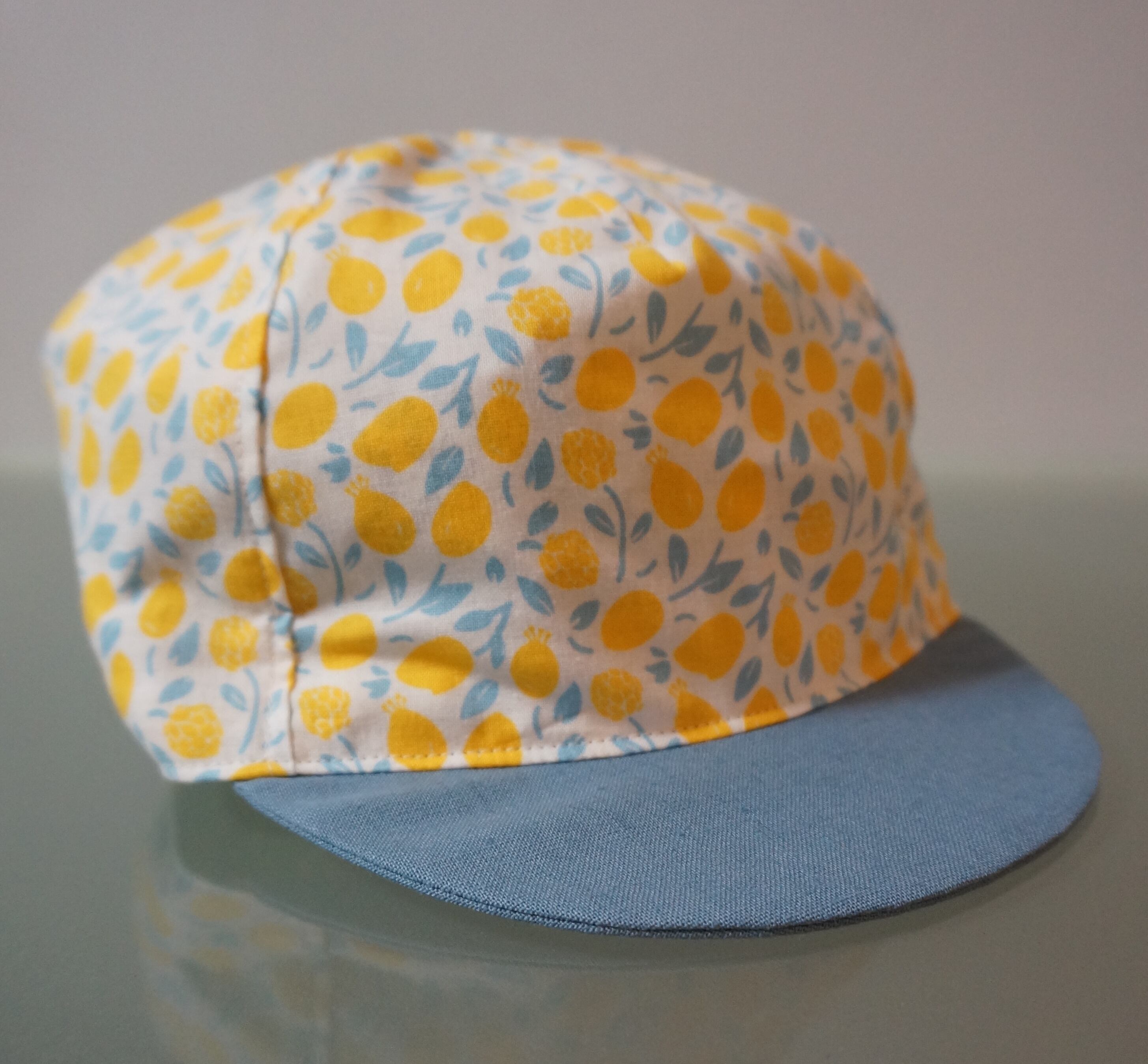 つばの色は少しくすんだ水色で元気な印象のサイクルキャップです。
