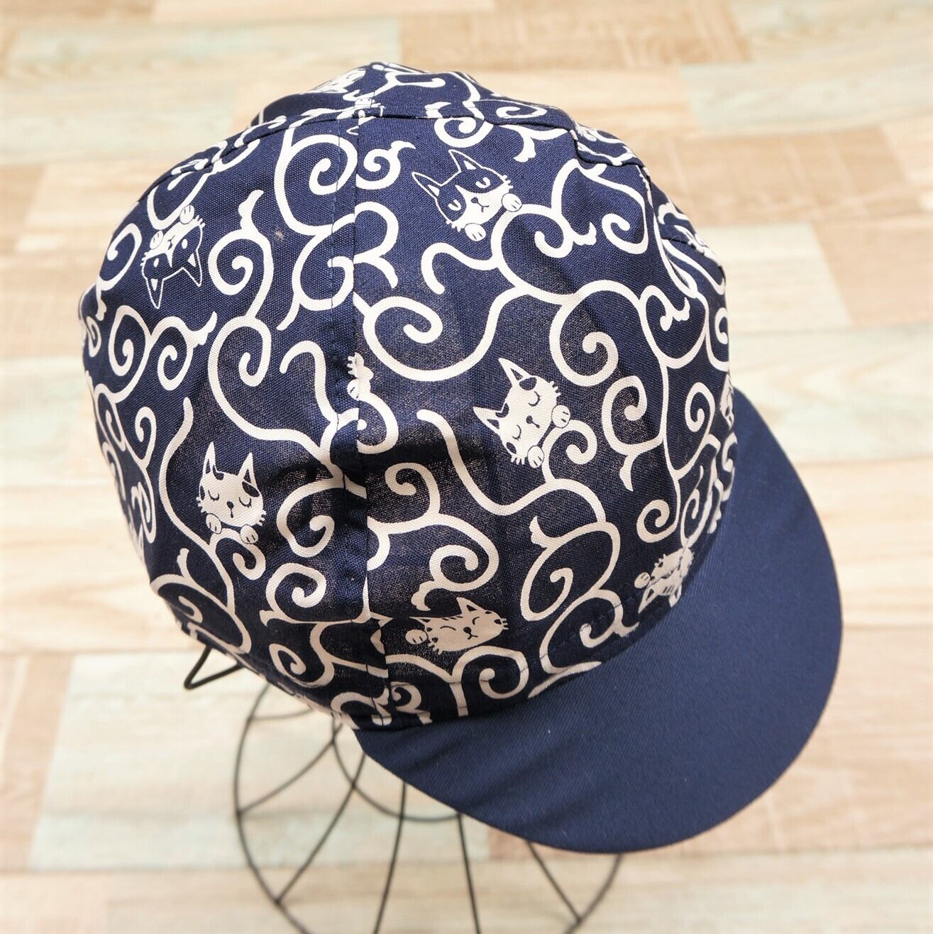 1点もの! サイクルキャップ 唐草ニャンコ ネイビー